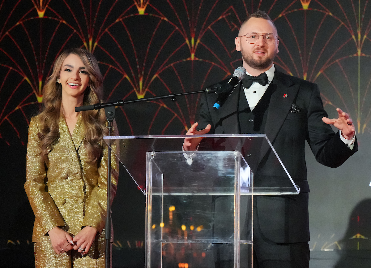 Matt Skube, de CTV, s'entretient avec le propriétaire des Sénateurs d'Ottawa, Michael Andlauer, au sujet du Gala Noir, Rouge et Or des Sénateurs d'Ottawa de cette année